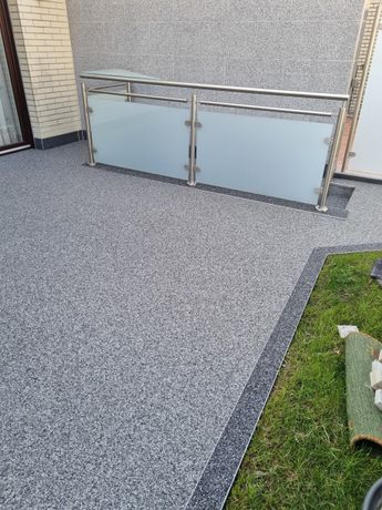 Steinteppich ist eine dauerhafte Lösung für ihre Terrassensanierung, auch mehrfarbig und auf Wunsch mit Ornamenten.
